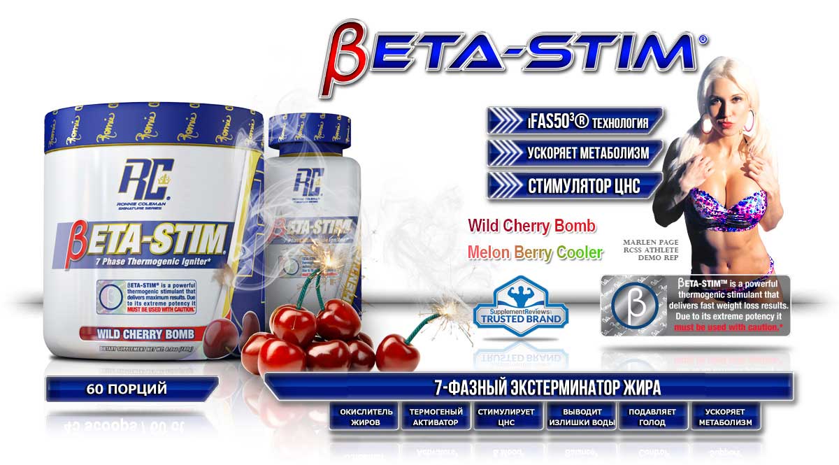 Продвинутая технология, использованная при создании жиросжигателя Beta-Stim позволяет ему одновременно работать в 7 различных направлениях! Бета-Стим: ускоряет обмен веществ, помогает контролировать голод, играет роль активатора термогенеза, выводит излишки воды из организма, стимулирует нервную систему, помогая сохранять мотивацию на низкоуглеводной диете, является мощным энергетиком, ингибирует способность организма запасать жиры, влияя на активность синтаз жирных кислот. |